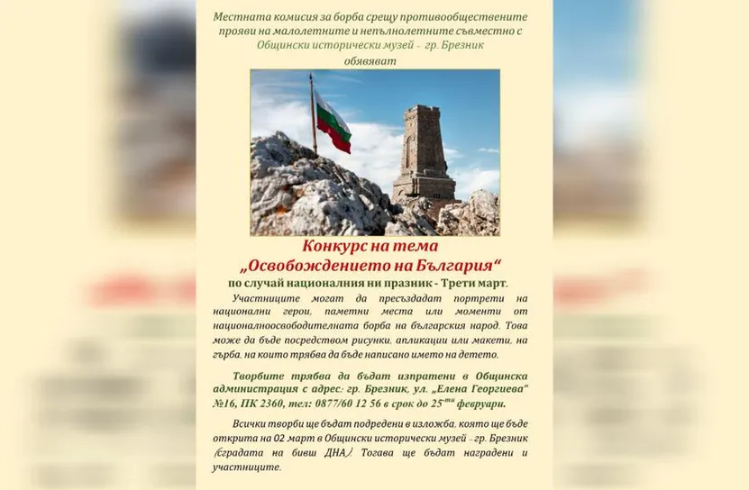 Инициативата е посветена на Трети март, а срокът за участие е до 25 февруари