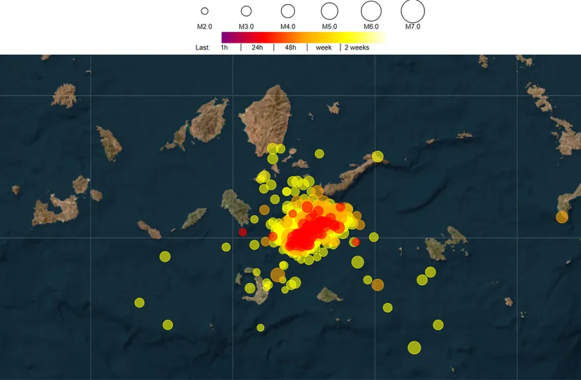 Епицентърът на земетресението е бил във водите на Егейско море на 385 километра югоизточно от Атина
