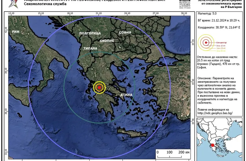 Епицентърът е на 300 км. от българо-гръцката граница