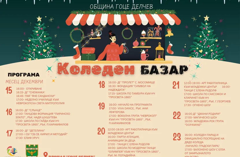 Събития, концерти и атракции очакват жителите и гостите на града от 15 до 23 декември на площад „Гоце Делчев“