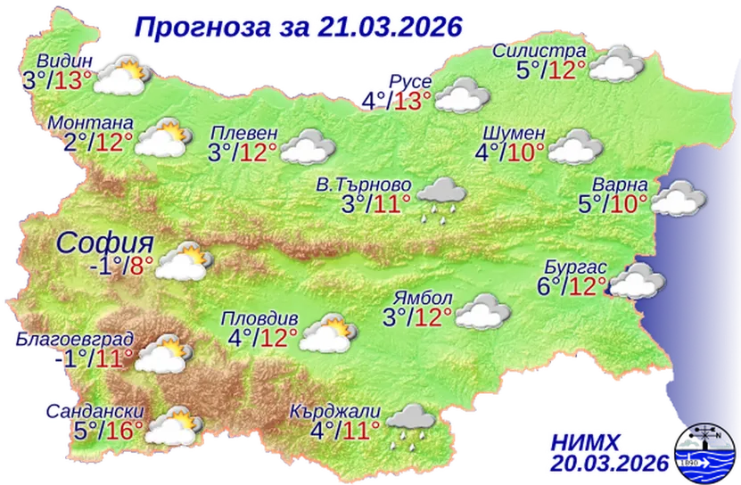 Времето на 21 март 2026 г.